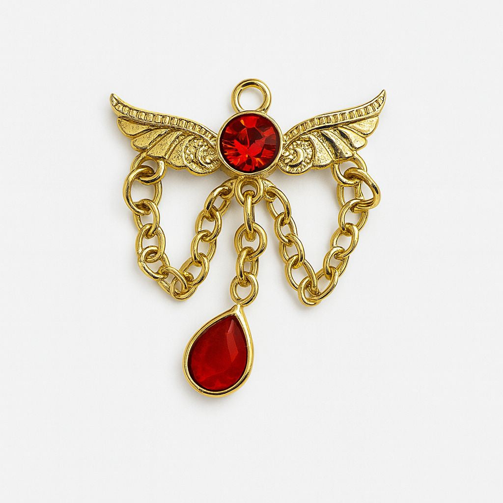 Radiant, fierce, and untamed — Seraphis is inspired by the legendary seraphim, celestial beings of fire and light. With intricately carved wings, cascading golden chains, and bold crimson gemstones, this charm embodies the perfect balance between elegance and power. The teardrop stone sways like a burning ember, a reminder that your inner fire can never be dimmed. Seraphis is not just a charm — it’s a symbol of divine strength, fearless beauty, and unapologetic passion.