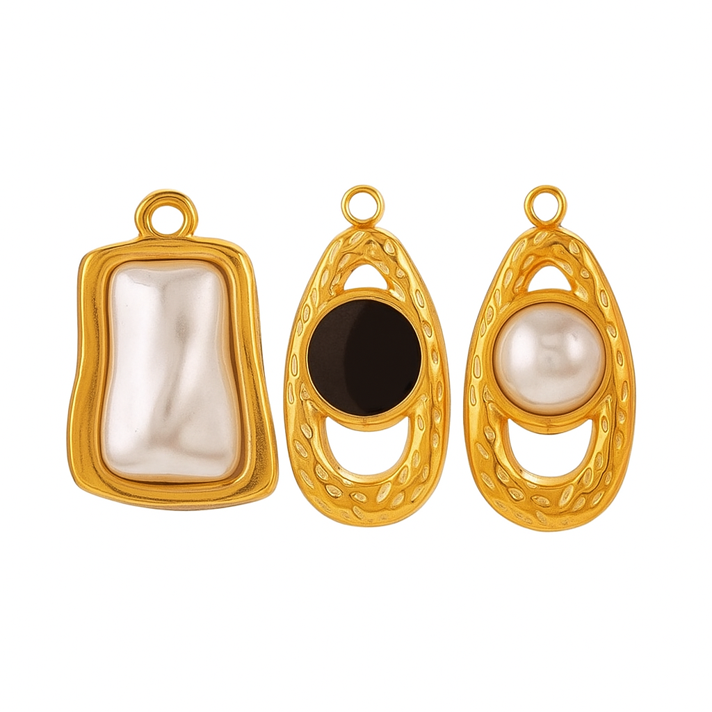 A curated series of elemental charms, Terra Forms draws from nature’s quiet strength and beauty. Each pendant—sold separately—features its own unique form: luminous pearl, bold onyx, or sculpted gold. Designed to stand alone or layer beautifully, these pieces let you express your style one form at a time.