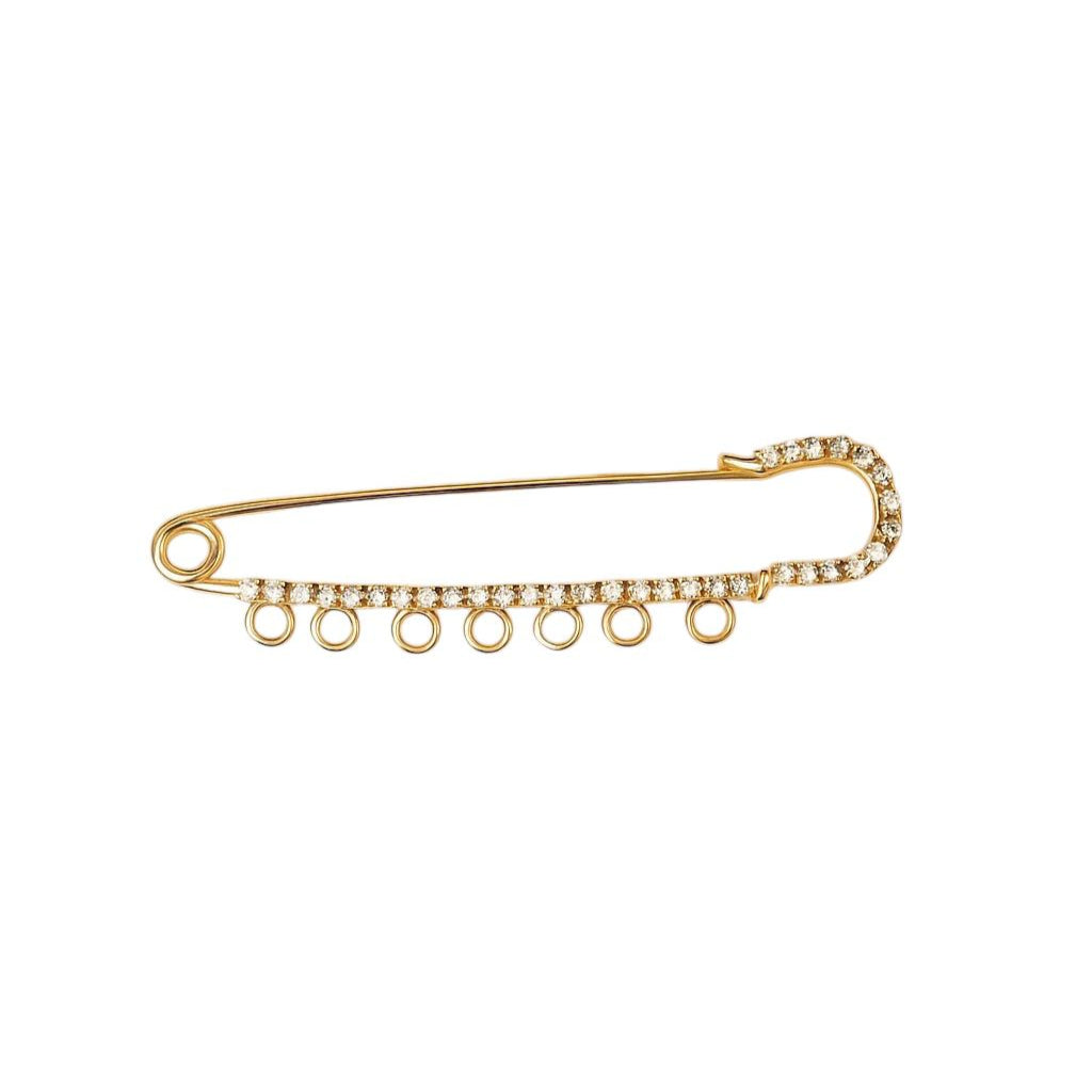 The Bloom Pin is your blank canvas—a gold-tone safety pin adorned with delicate crystals and seven loops ready to carry your story.