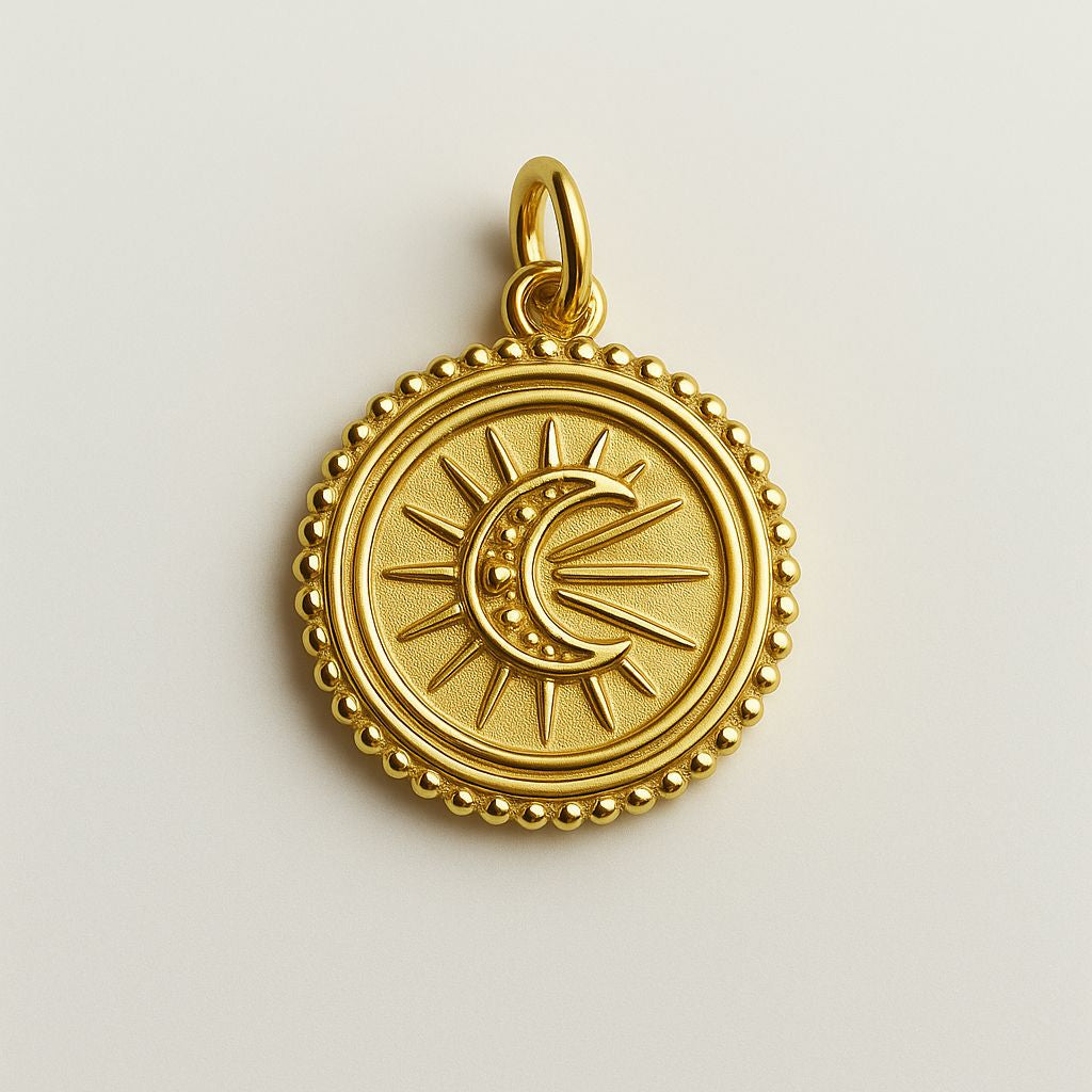 Veluna is a symbol of harmony—where opposites collide and create something powerful. The sun’s sharp rays meet the soft curve of the moon in this golden medallion, reminding you that you can hold both light and shadow, strength and softness, in perfect balance.